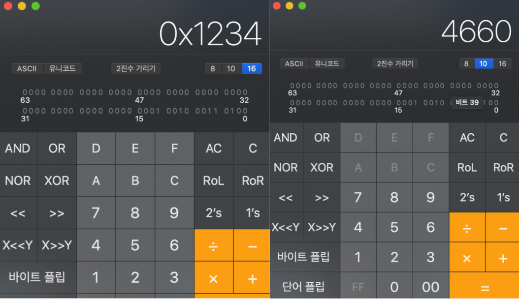 이렇게 계산기를 이용하면 0x1234는 10진수로 4660인걸 알수있다.