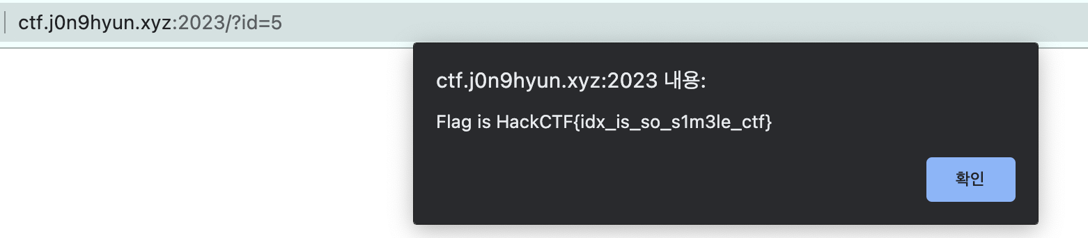 그러면 ?id=1에서 1을 5로 바꾸면 flag를 찾을 수 있다.