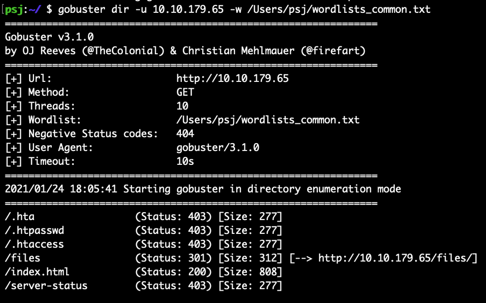 gobuster dir -u <deploy ip> -w <common.txt 위치>