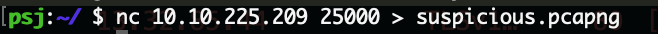 nc <deploy ip> 25000 > suspicious.pcapng