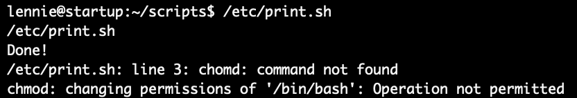 그러면 /etc/print.sh에 /bin/bash에 권한을 주면 Permission denied 오류가 안나고 root로 전환할 수 있을 것이다.