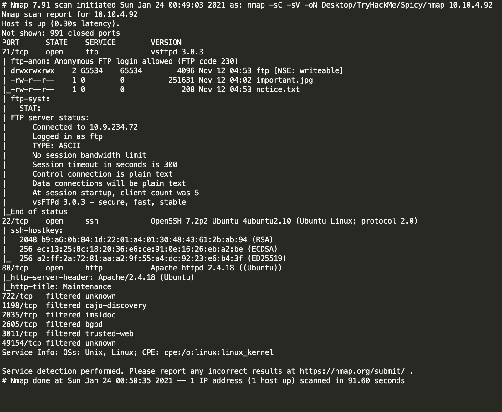 nmap -sC -sV -oN <deploy ip>