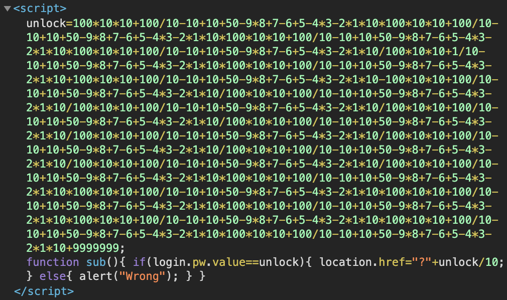 그럼 이제 unlock값을 알기 위해 먼저 unlock의 값이 정의 되는 부분, 즉 "unlock=" 부터 "9999999"까지 복사한다.