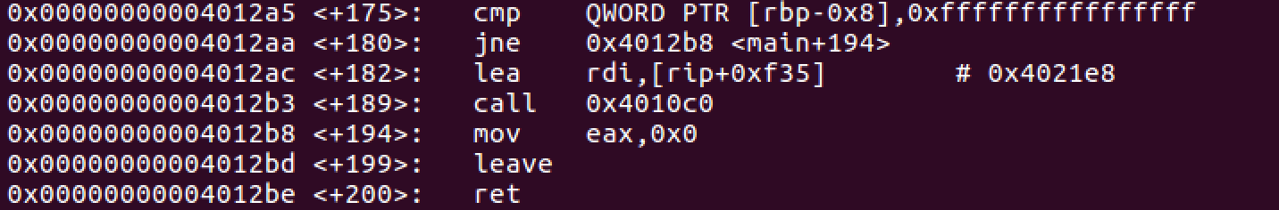 위를 보면 rbp-0x8랑 0xfffffffffffffff랑 비교한다.