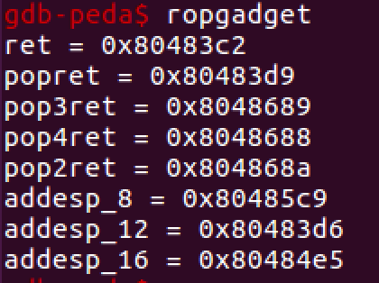 gdb-peda의 ropgadget함수를 이용해서 구한다.