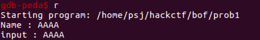 그러면 결과적으로 exploit code를 짤 때 name에 쉘코드를 넣고, input에 nop을 24바이트 채우고 name이 들어가는 주소를 넣으면 된다.
