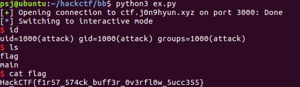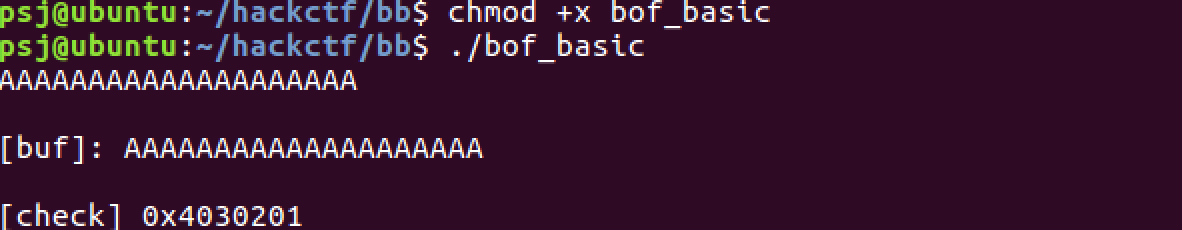 Starting program: /home/psj/hackctf/bb/bof_basic