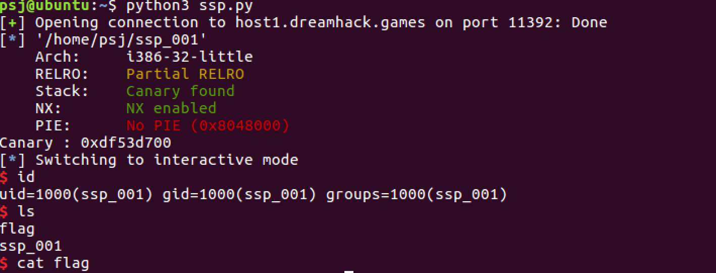 이제 카나리의 값을 구하는 프로그램을 만들었으니 exploit code를 짜 보자.