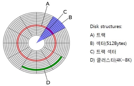 트랙, 섹터, 트랙 섹터, 클러스터가 있다.