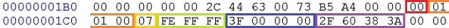 이제 파티션테이블 각각의 오프셋이 의미하는 것을 확인해보자.