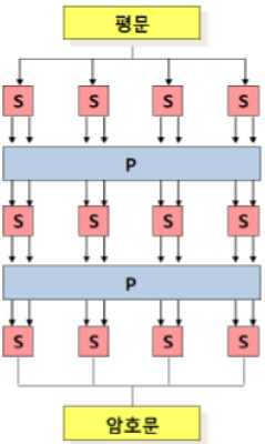 SPN은 곱 암호의 일종인데, S-box를 사용하는 치환, P-box를 사용하는 순열을 여러 과정에 걸쳐 반복한다.