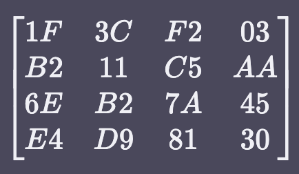 AES는 4x4(4행 4열) 배열로 재구성된다.