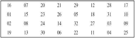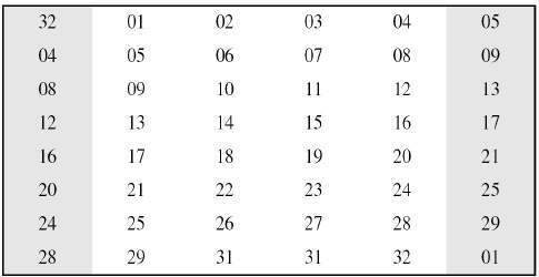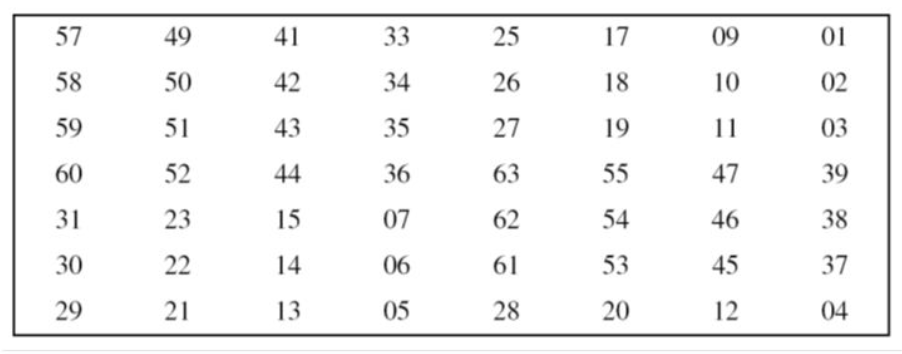 여섯 비트 중 첫 번째와 마지막 비트로 행을 결정하고, 나머지 네 개의 비트로 열을 결정한다.