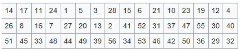 압축 순열은 아래를 이용하여 56비트를 48비트로 압축시킨다.
