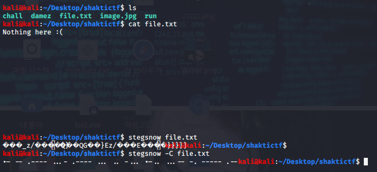 stegsnow로 실행하면 의문의 ascii 코드가 나왔다.
