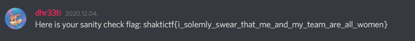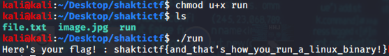이렇게 명령어를 넣으니 shaktictf{W4rmUp_Ch4ll3ng3} flag값이 나왔다.