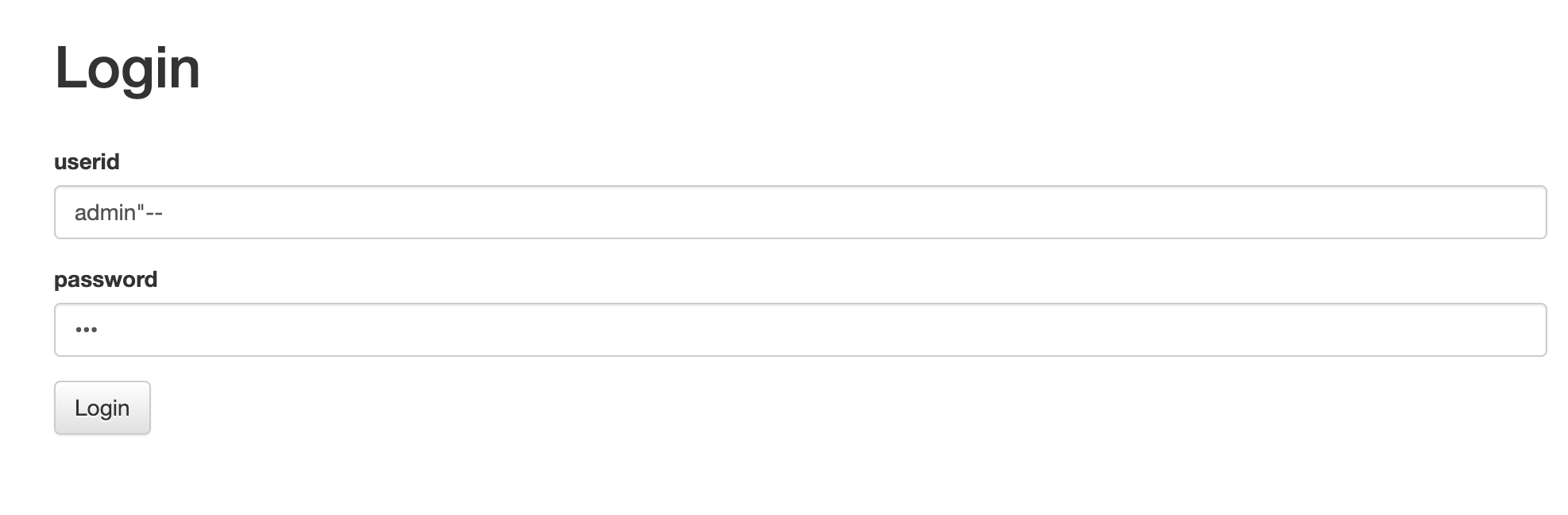 select * from users where userid="admin"--" and userpassword="{userpassword}"