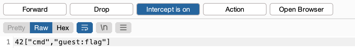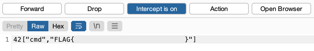 그래서 어떤식으로 전송되는지 알아보기 위해서 burp sutie로 flag 커맨드를 전송했는데 다음과 같이 전송되는걸 알 수 있다.