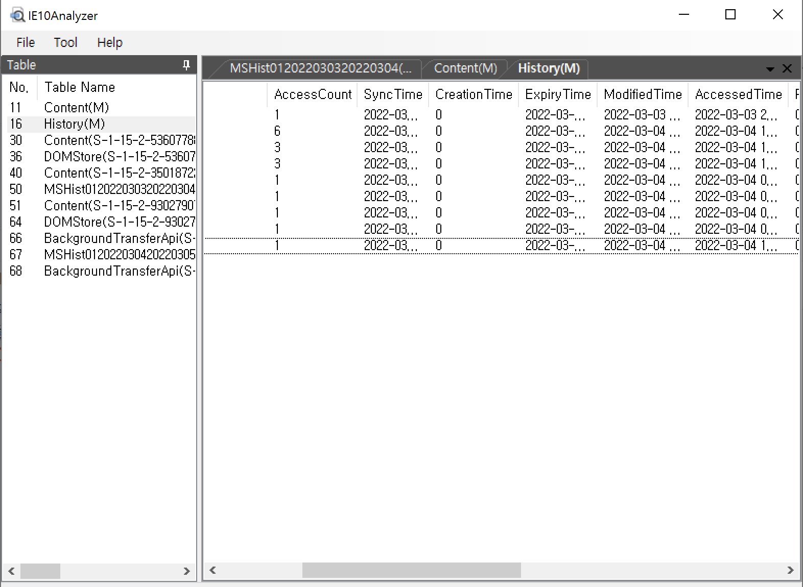 이번에는 Internet Explorer 히스토리 파일을 분석해 볼 것이다.