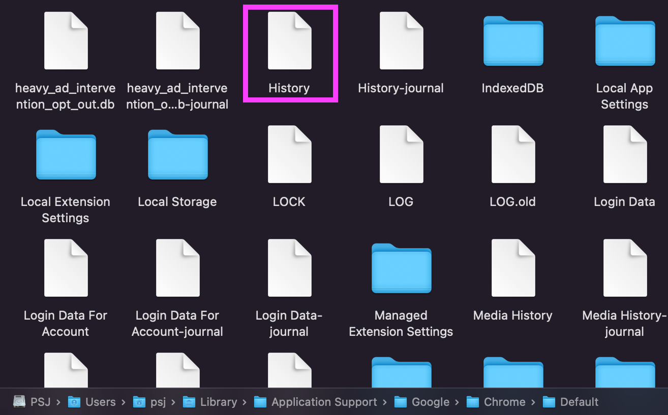/Users/<username>/Library/Application\ Support/Google/Chrome/Default/History