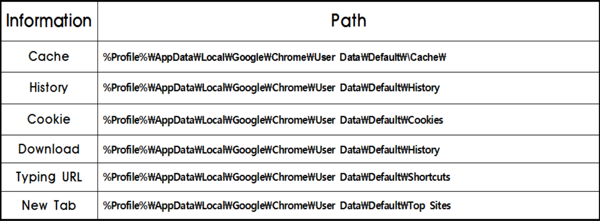 History 정보 : 사용자가 방문한 웹사이트 주소 정보