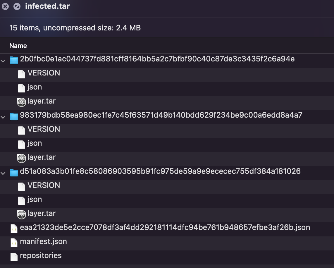그러면 이 infected.tar을 가지고 분석을 해보자.