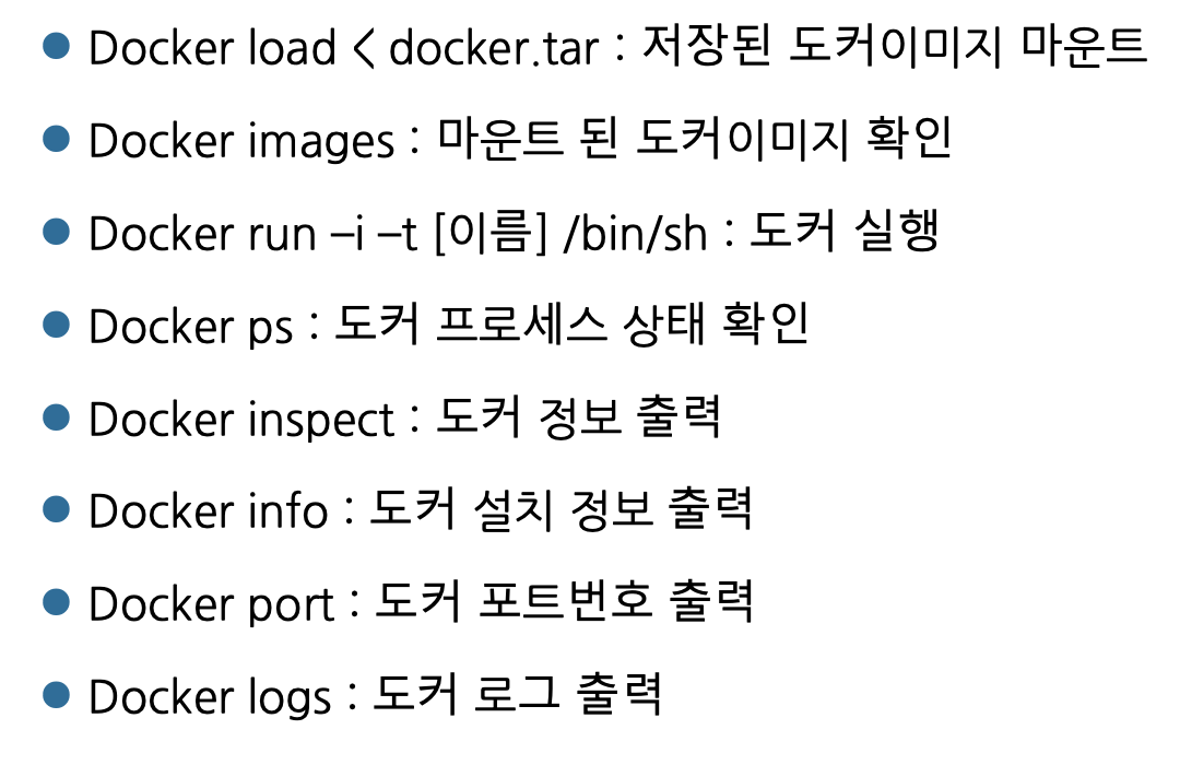 docker 명령어는 다양한데 다음은 분석하기 위한 명령어들을 요약한 것이다.