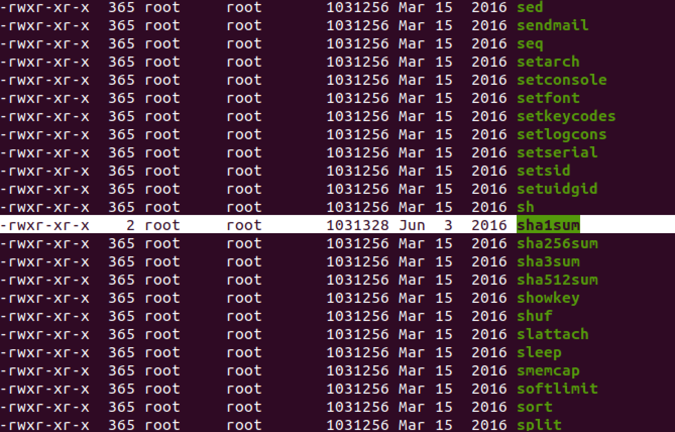 위와 같이 "cat", "sha1sum" 만 생성시간이 다르다.