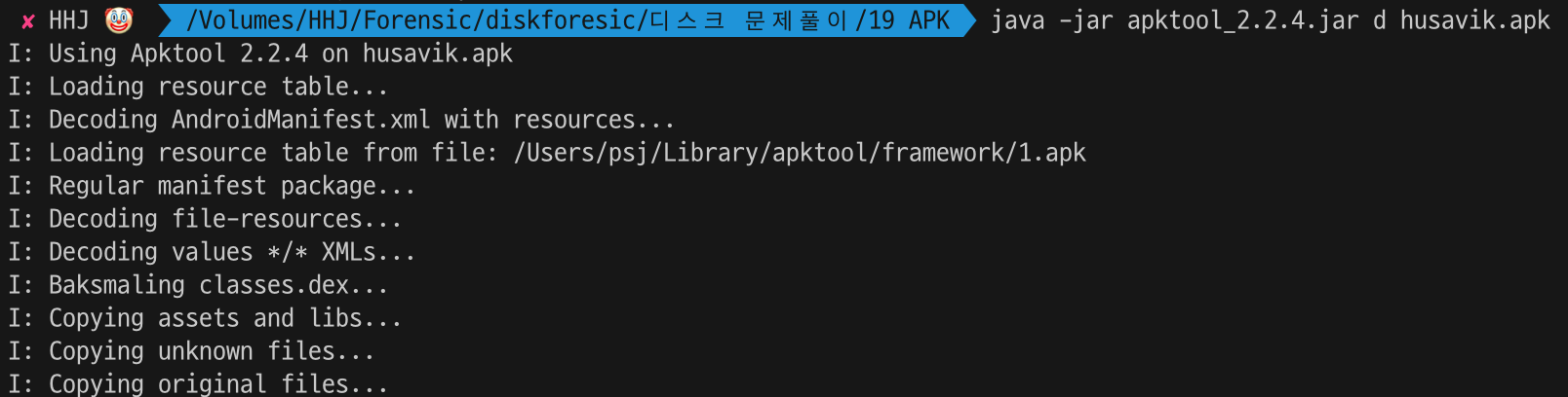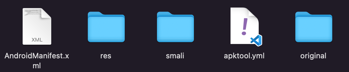 이제 apktool를 이용하여 apk 내부파일을 다음과 같이 추출할 수 있다.