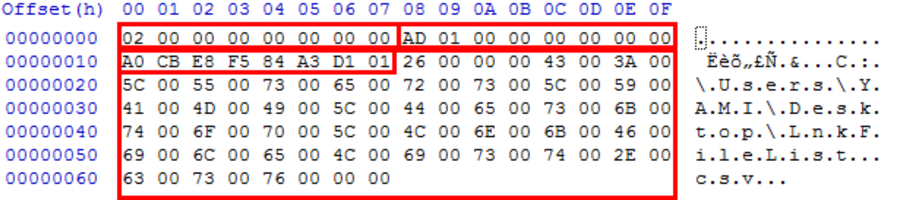 3. 16~23는 삭제 시간 정보이다. 01D1A384F5E8CBA0 -> Sun, 01 May 2016 17:39:22 +0900
