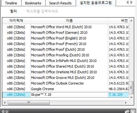 이제 오른쪽 탭에서 설치된 응용프로그램을 살펴보면 Skype가 설치된 것을 확인할 수 있다.