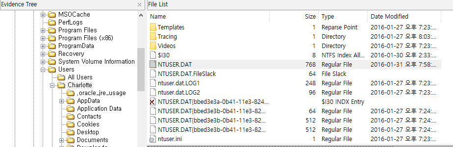 그리고 C:\Users\[user]\ 에서 NTUSER.DAT도 추출해준다. (위 파일까지 모두 한 폴더에 담는다)