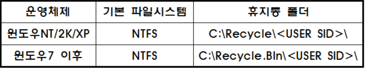 Recycle.bin의 경로는 다음과 같다.