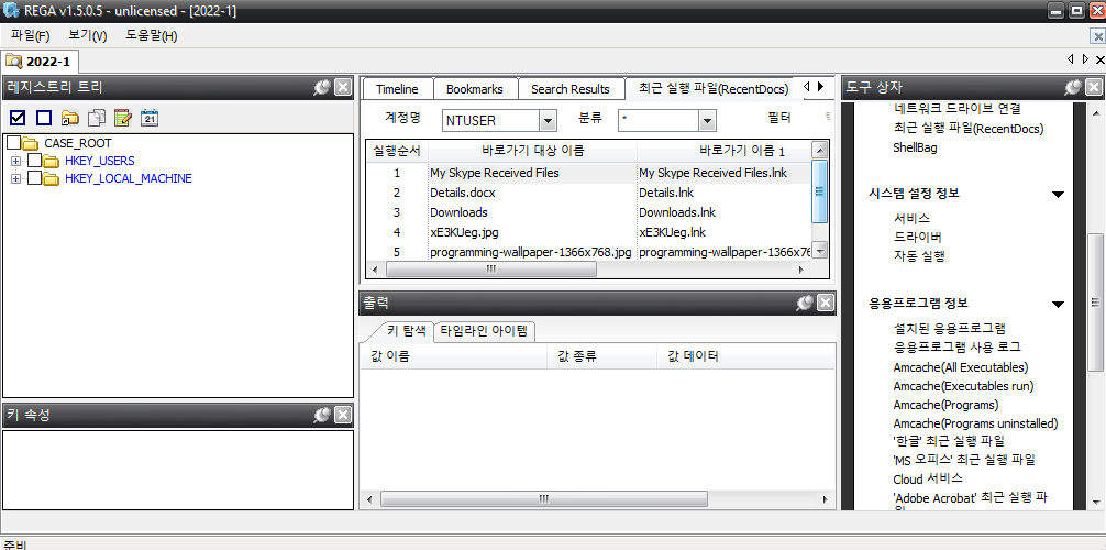 일단 대표적으로 Details.docx가 있고, Skype관련 파일이 실행된 걸 알 수 있다. 그거 말고는 증거를 얻을 수 있는 게 별로 없어 보인다.