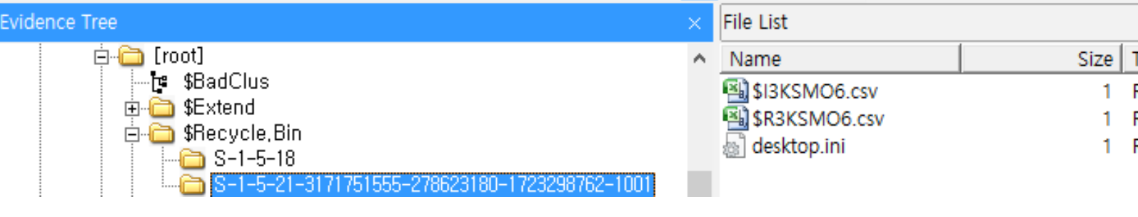 레지스트리 분석은 끝났으니 Recycle.bin을 분석해보자.