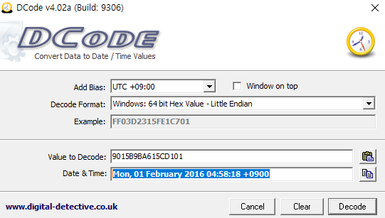 일단 파일 사이즈는 0x8F0 -> 2288bytes 이고, 삭제된 시간은 다음과 같이 Dcode를 이용하여 확인할 수 있다.