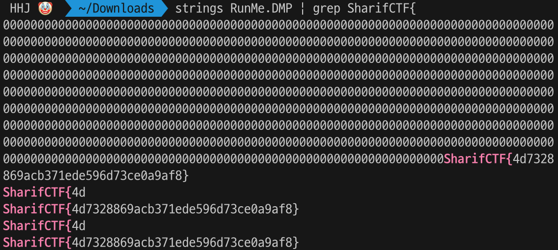strings를 이용하여 flag형식을 검색해보면 다음과 같이 쉽게 flag를 획득할 수 있다.