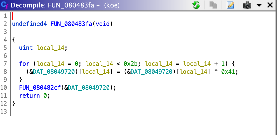 &DAT_08049720에 있는 값을 반복문을 하여 0x41로 XOR 해주는 것을 확인할 수 있다.