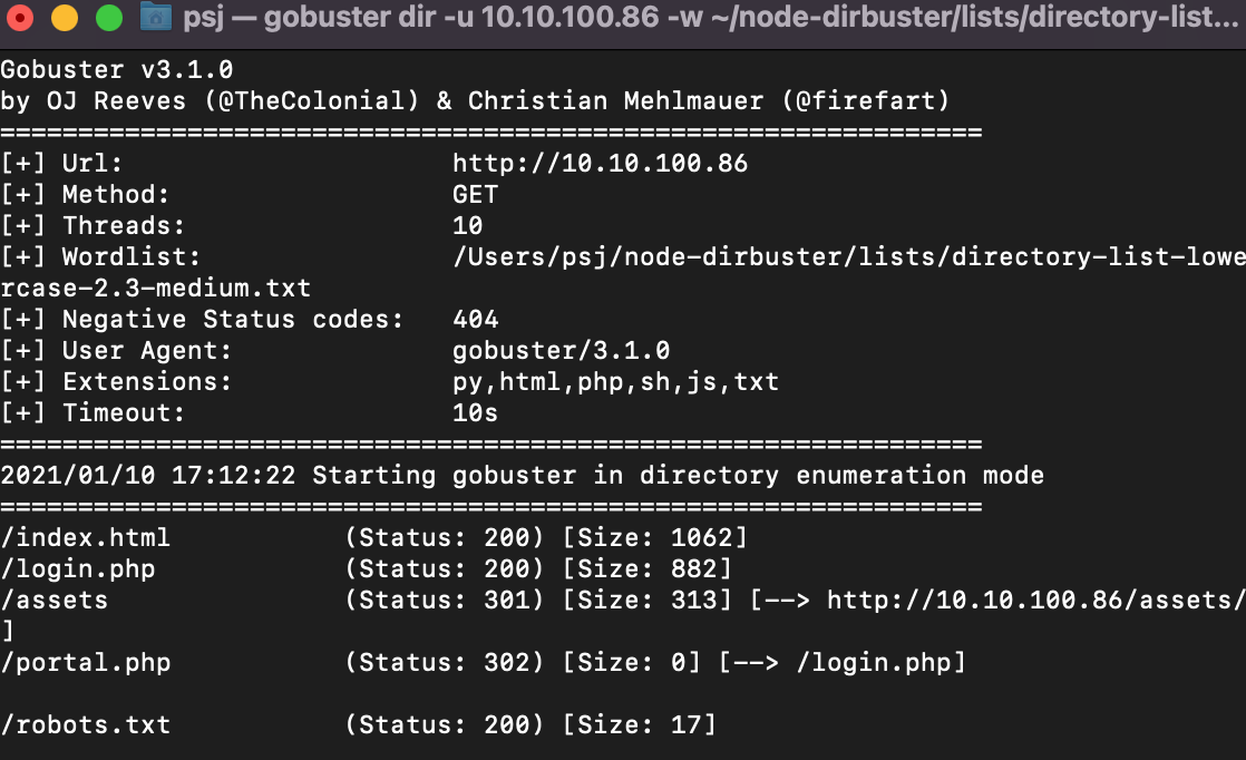 gobuster를 설치한후 (sudo apt-get install gobuster)