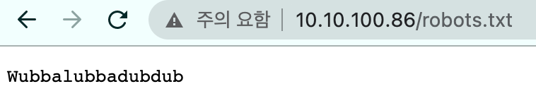 robots.txt로 들어가니 Wubbalubbadubdub라고 릭이 애니매이션에서 말하는 유행어가 나온다.