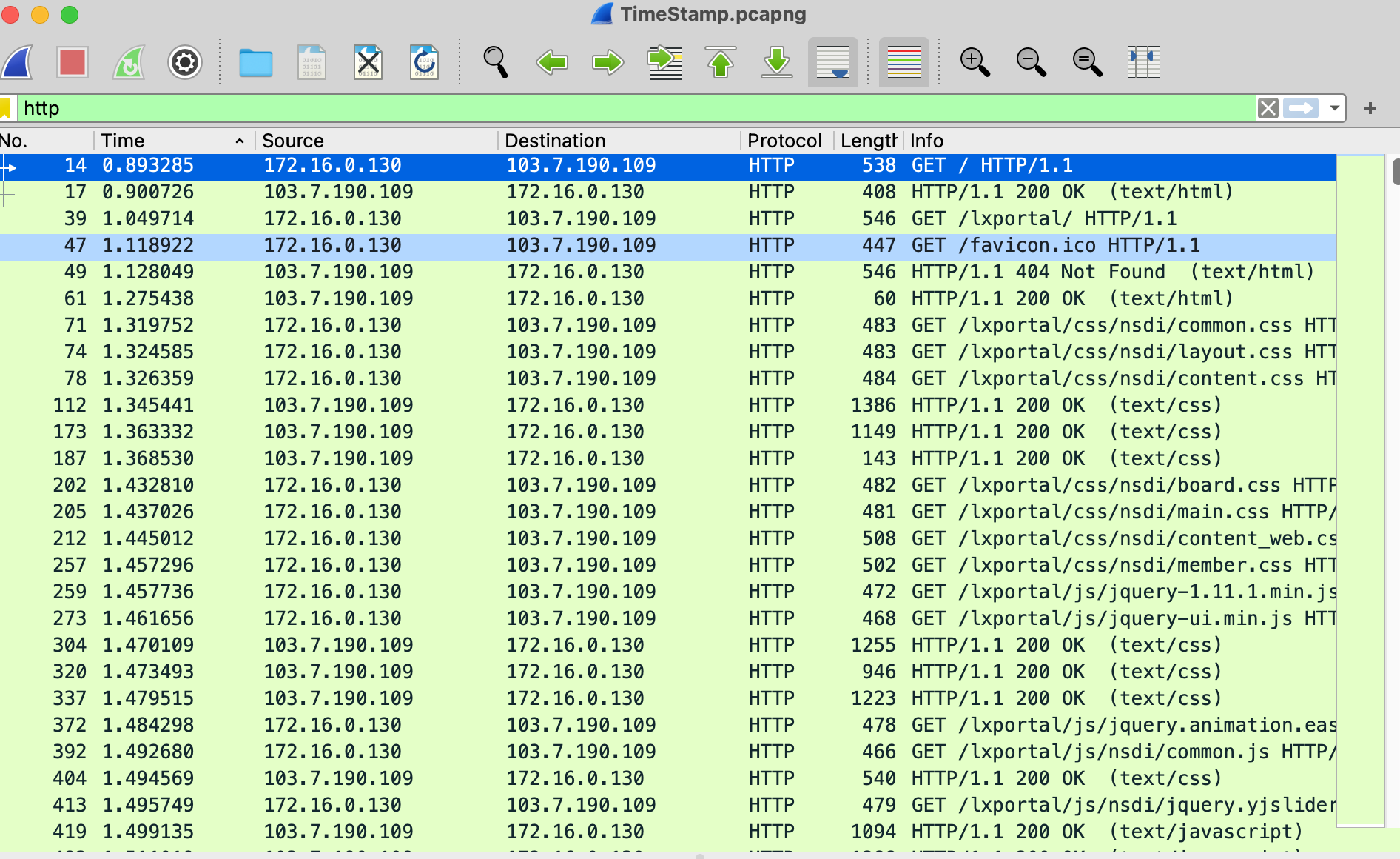 그래서 그냥 HTTP로 filtering 후 시간 순으로 나열했다.